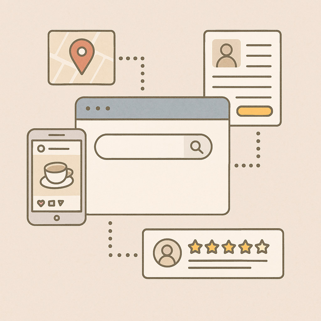 요즘 손님들은 무조건 검색부터 시작합니다. “성남 당근케이크 맛집”, “크림라떼 감성 카페”, “조용한 카페 추천”처럼요. 이때 가장 많이 노출되는 건 블로그, 인스타그램, 네이버 플레이스입니다. 그런데 이 세 가지는 따로 움직이는 게 아니라, 연결되어야 파급력이 생깁니다.