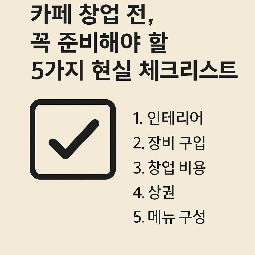 [요약] 카페 창업 전 반드시 고려해야 할 5가지 체크리스트를 실제 운영자의 경험을 바탕으로 정리했습니다. 인테리어, 장비, 예산, 상권, 메뉴 구성까지 — 감성보다 현실이 먼저입니다.